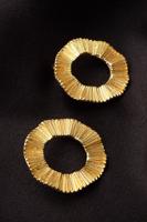 Ofis stilinize yakışacak zarif ve şık bir çift küpe arıyorsanız, bu model tam size göre. Büyükçe bir gold halkadan oluşan bu küpeler, materyalin üzerindeki hareketli doku sayesinde canlı ve modern bir görünüme bürünüyor. Üstün kaliteli malzemeden üretilen bu küpe modelini en şık ofis elbiseleriniz ve gömlekleriniz için tercih edebilirsiniz.