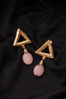 Doğal taş detaylı, pimli üçgen formlu, sallantılı küpe En:1.5cm Boy:5cm