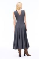Dalvas Regular Fit Maxi Boy Sıfır Kol Bisiklet Yaka Antrasit Elbise