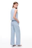 • Bayan BEBEK MAVİSİ Bebe Mavisi Yüksek Bel Geniş Paça Keten Pantolon