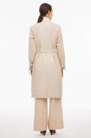 • Bayan BEJ Beldas Regular Fit Diz Altı Takma Kol Gömlek Yaka Bej Renk Trenckot