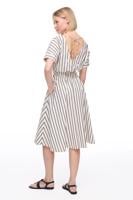 • Bayan BEJ Krem Çizgili Pamuklu Diz Altı Elbise