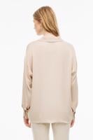 • Bayan BEJ Clarys Regular Fit Standart Boy Takma Kol V-Yaka Bej Renk Kadın Gömlek
