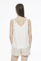 Elonias Regular Fit Standart Boy V-Yaka Bej Renk Kadın Bluz