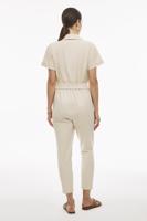 Forever Regular Fit Düşük Kollu Lastikli Paça Gömlek Yaka Açık Bej Renk Tulum