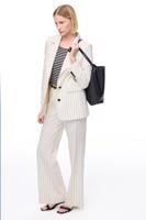 • Bayan BEJ Açık Bej Uzun Kollu Çizgili Keten Ceket