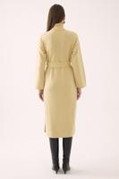 • Bayan BEJ Mayra Regular Fit Diz Altı Degaje Yaka Açık Bej Renk Triko Elbise
