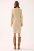• Bayan BEJ Mayra Regular Fit Diz Altı Degaje Yaka Kol Düğmeli Açık Bej Renk Triko Elbise
