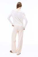 Güçlü siluetiyle öne çıkan bu pantolon, yüksek bel ve geniş paça tasarımıyla modern şehir şıklığının anahtar parçası. Vanilya tonunun zarif ışıltısı, hem sofistike bir ofis kombini hem de gündelik stile ferah bir hava katıyor. Rahat kalıbı sayesinde konfor sunarken, uzun boy detayıyla her adımda elegan bir duruş yaratıyor. Gardırobunuzda zamansız bir yatırım parçası olacak.