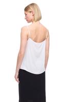 Karışımlı kumaşıyla hafif ve nefes alabilir bir yapı sunan bu bluz, V-yaka kesimi ve dantel detaylarıyla feminen bir dokunuş sağlar. Standart boy ve kolsuz tasarımıyla hem yaz kombinlerinde hem de katmanlı stillerde rahatça kullanılabilir.