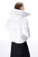 Awans Rahat Kalıp Kısa Boy Düşük Kollu Kapüşonlu Beyaz Mont