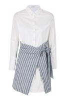 Erlan Regular Fit Gömlek Yaka Mini Boy Çizgili Desenli Beyaz Renk Elbise