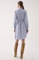 Hardy Regular Fit Çizgili Desenli Diz Boy Düşük Kollu Gömlek Yaka Beyaz İndigo Renk Elbise