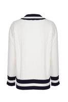 Triko Rahat Kalıp Standart Boy Takma Kol V-Yaka Beyaz Kazak