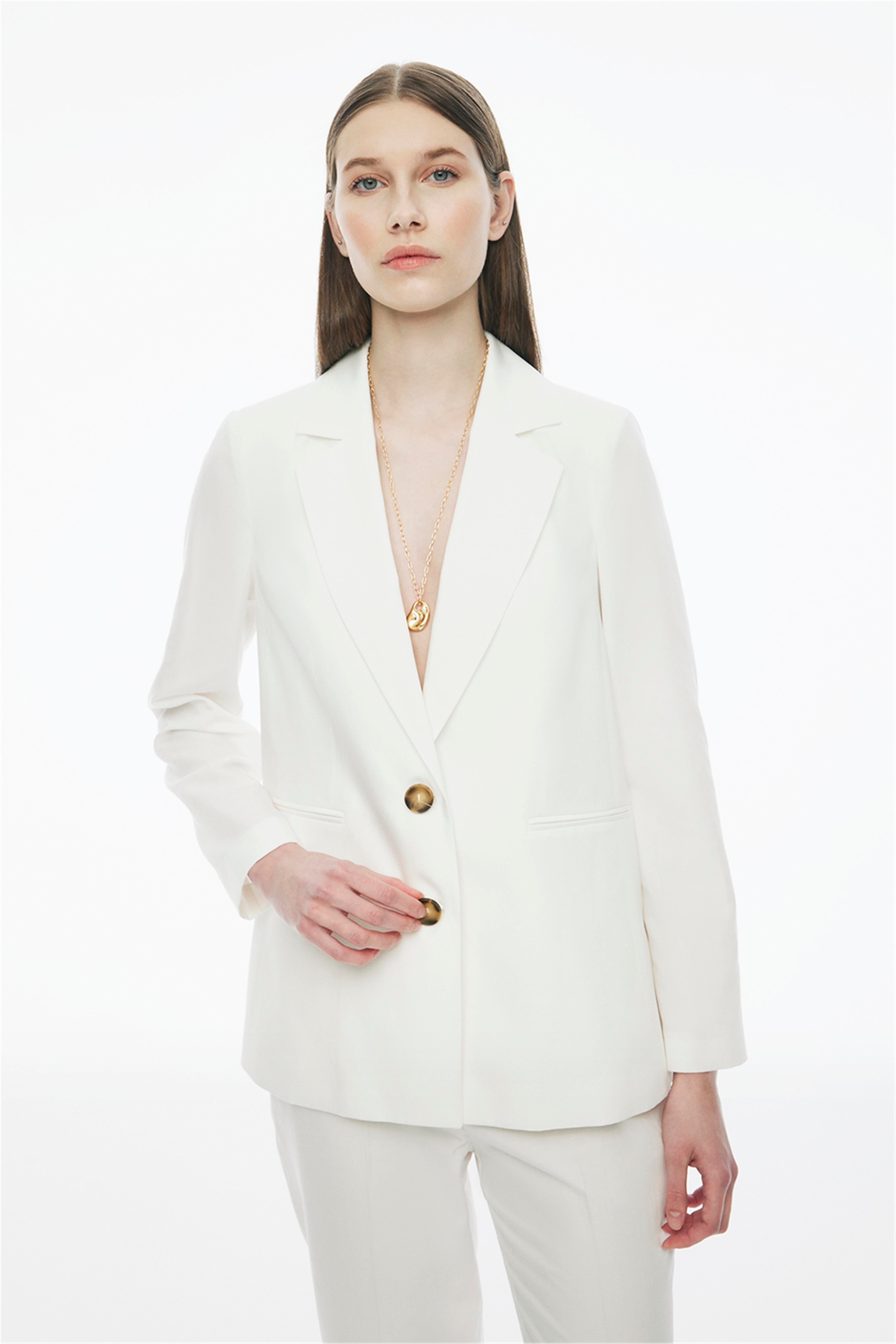 Blannes Regular Fit Standart Boy Takma Kol Ceket Yaka Ekru Renk Kadın Ceket (124061251)