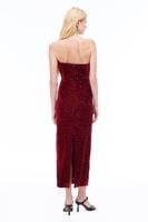 Donicas Bele Oturan Bilek Boy Takma Kol Straplez Bordo Elbise