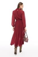 Bordo Balıkçı Yaka Bilek Boy Elbise