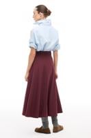 Bordo Yüksek Bel Çizgili Bilek Boy Etek
