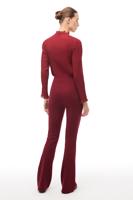 • Bayan BORDO Bordo Yüksek Bel Slim Fit Geniş Paça Pantolon