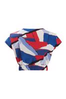 Lauri Regular Fit V-Yaka Geometrik Desenli Çok Renkli Kadın Crop Bluz