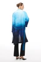 Degrade deseni modern bir hava katarken, erkek yaka ve reglan kol detayı zarif bir duruş sağlar. Diz altı boyu ile feminen bir silüet sunan tasarım, günlük şıklığı zahmetsizce yakalamanıza yardımcı olur. Rahat kalıbı sayesinde günün her anında keyifle tercih edebilirsiniz.