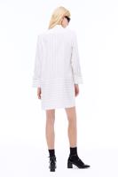 Aponias Rahat Kalıp Çizgili Desen Diz Üstü Takma Kol Gömlek Yaka Ekru Elbise