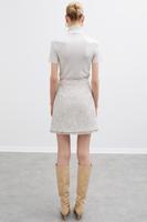 • Bayan EKRU Bens Slim Fit Mini Boy Chanel Desenli Orta Bel Ekru Renk Etek