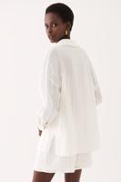 Bianas Rahat Kalıp Yarım Dik Yaka Standart Boy Ekru Renk Kadın Gömlek