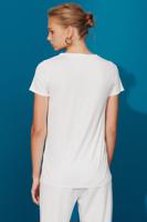 • Bayan EKRU Casta V Yaka Figür Desenli Ekru Bluz