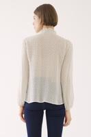 • Bayan EKRU Chester Regular Fit Çiçek Desenli Standart Boy V-Yaka Ekru Lacivert Renk Kadın Bluz