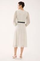 Chester Regular Fit Çiçek Desenli Uzun Boy Takma Kol V-Yaka Ekru Lacivert Renk Elbise