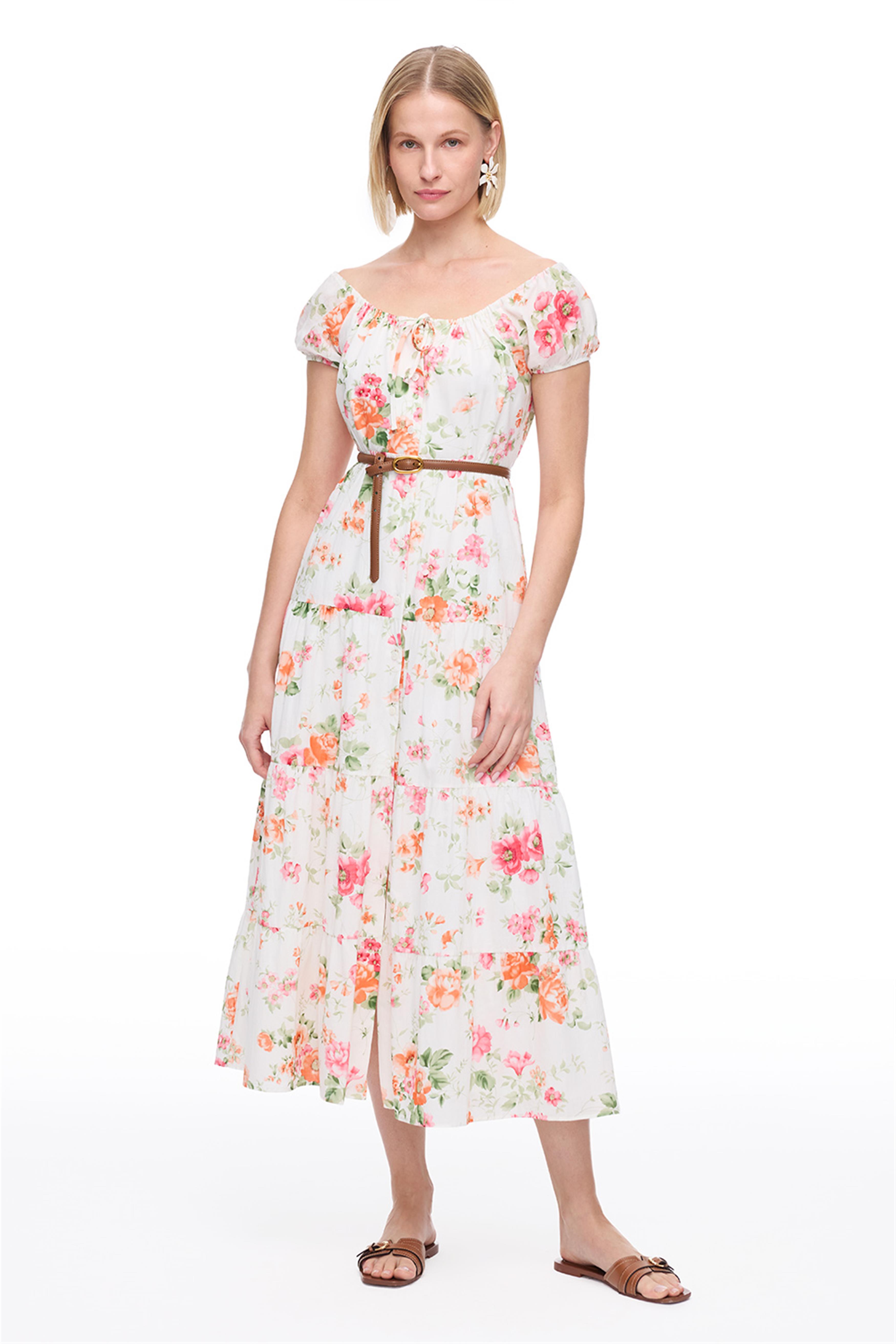 Ekru Clios Regular Fit Çiçekli Uzun Boy Elbise
