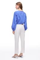 Ekru tonunun zarif dokunuşuyla öne çıkan bu denim pantolon, yüksek bel detayı ve slim fit kalıbıyla modern bir görünüm sunar. Bilek boy ölçüsü ve düz paça tasarımı, şıklığı günlük kullanıma uyarlarken fermuar-düğme kapaması pratiklik sağlar. Zamansız çizgisiyle hem günlük kombinlerde hem de ofis stilinde rahatlıkla tercih edilebilir.