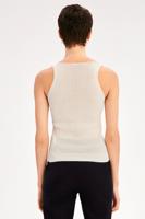 • Bayan EKRU İllas Slim Fit V-Yaka Askılı Kısa Ekru Renk Kadın Triko Bluz