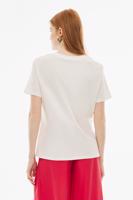 Kelins Regular Fit Standart Boy Bisiklet Yaka Ekru Renk Kadın Tişört