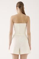 • Bayan EKRU Nicole Slim Fit Crop Boy Askılı Straplez Ekru Renk Kadın Bluz