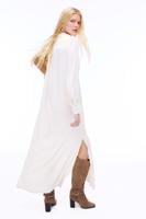 • Bayan EKRU Safira Regular Fit Takma Kol Gömlek Yaka Ekru Renk Elbise