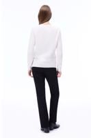 • Bayan EKRU Triko Rahat Kalıp Standart Boy Takma Kol Bisiklet Yaka Ekru Kazak