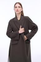 • Bayan HAKİ Anabels Rahat Kalıp Diz Altı Reglan Kol Ceket Yaka Hakı Kaban