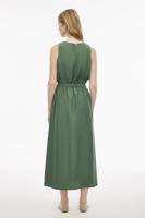 • Bayan HAKİ Happy Regular Fit Midi Boy Sıfır Kol Bisiklet Yaka Koyu Yeşil Renk Elbise