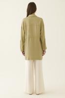 Jarmo Rahat Kalıp Erkek Yaka Diz Üstü Açık Haki Renk Kadın Trench Mont