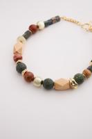 Doğal taş, ahşap ve metal boncuk detaylı kolye Uzunluk: 50cm