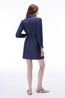 Latibule Regular Fit Diz Üstü Takma Kol Gömlek Yaka İndigo Renk Elbise