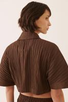 Alpinas Rahat Kalıp Gömlek Yaka Crop Boy Kahverengi Renk Kadın Gömlek