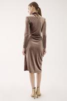 • Bayan KAHVERENGİ Lillesol Slim Fit Diz Altı Takma Kol Dik Yaka Kahverengi Renk Elbise