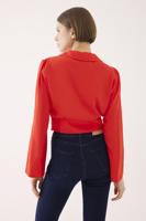 Darell Rahat Kalıp Kısa Boy Takma Kol V-Yaka Kırmızı Renk Kadın Bluz