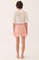 Dewis Regular Fit Mini Boy Çizgili Desenli Orta Bel Kırmızı Ekru Renk Etek