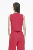 Fredos Rahat Kalıp Kısa Boy Sıfır Kol V-Yaka Çay Ağacı Kırmızı Renk Kadın Yelek