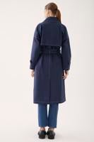 • Bayan LACİVERT Elsa Rahat Kalıp Uzun Boy Düşük Kollu Ceket Yaka Lacivert Renk Trenckot