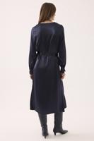 Leatrice Rahat Kalıp Uzun Boy Takma Kol V-Yaka Lacivert Renk Elbise